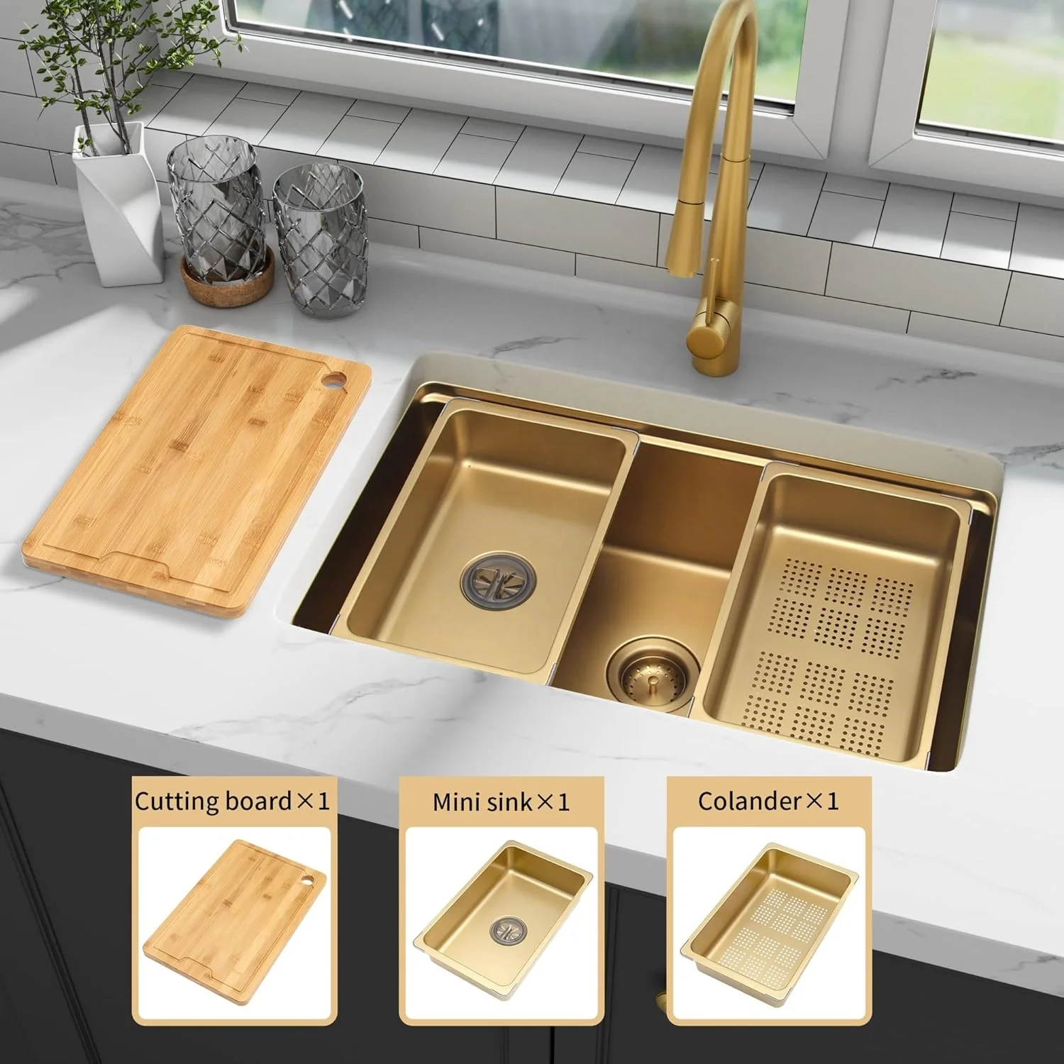 1.High Quality and Durable Stainless Steel Material The Product is made of premium grade Stainless Steel 201/304 ensuring that it is corrosion-resistant, highly durable and will serve you for long. 2.Reversible Design Enjoy the convenience of a reversible stainless steel farm sink that has a matte black color on the other side. The kitchen sink is made with a higher grade of 304 stainless steel for the black side and 201 stainless steel for the silver side. 3.Installation Made EasyThe kitchen sink comes with an overflow drain hole and three faucet holes with a 1 3/4" nickel-plated chrome drain. This ensures that the sink can be easily installed with a one-piece nonslip undermount installation for an easy and seamless look. 4.Practical Design The stainless steel kitchen sink features a square shape design with two bowls. Drainboard grooves on the outer rim allow for easy water run-off and an overflow guard to prevent spillovers. This provides ample space and practicality for washing dishes. 5.CustomizableExperience Choose from a variety |