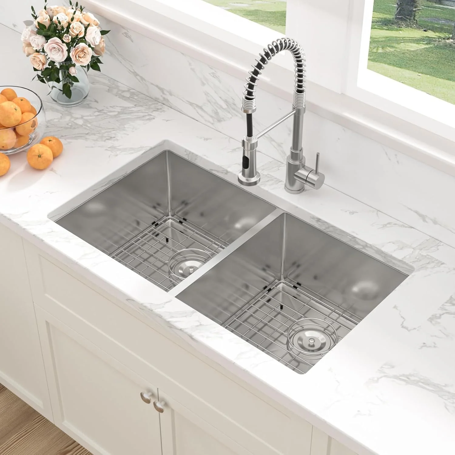 1.High Quality and Durable Stainless Steel Material The Product is made of premium grade Stainless Steel 201/304 ensuring that it is corrosion-resistant, highly durable and will serve you for long. 2.Reversible Design Enjoy the convenience of a reversible stainless steel farm sink that has a matte black color on the other side. The kitchen sink is made with a higher grade of 304 stainless steel for the black side and 201 stainless steel for the silver side. 3.Installation Made EasyThe kitchen sink comes with an overflow drain hole and three faucet holes with a 1 3/4" nickel-plated chrome drain. This ensures that the sink can be easily installed with a one-piece nonslip undermount installation for an easy and seamless look. 4.Practical Design The stainless steel kitchen sink features a square shape design with two bowls. Drainboard grooves on the outer rim allow for easy water run-off and an overflow guard to prevent spillovers. This provides ample space and practicality for washing dishes. 5.CustomizableExperience Choose from a variety |
