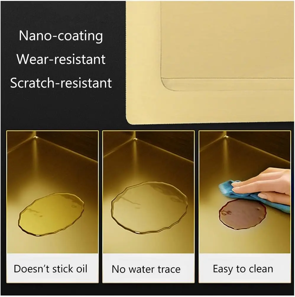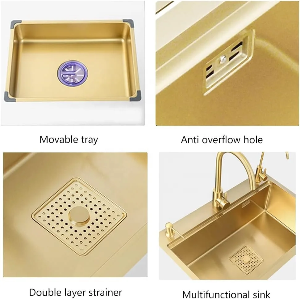 1.High Quality and Durable Stainless Steel Material The Product is made of premium grade Stainless Steel 201/304 ensuring that it is corrosion-resistant, highly durable and will serve you for long. 2.Reversible Design Enjoy the convenience of a reversible stainless steel farm sink that has a matte black color on the other side. The kitchen sink is made with a higher grade of 304 stainless steel for the black side and 201 stainless steel for the silver side. 3.Installation Made EasyThe kitchen sink comes with an overflow drain hole and three faucet holes with a 1 3/4" nickel-plated chrome drain. This ensures that the sink can be easily installed with a one-piece nonslip undermount installation for an easy and seamless look. 4.Practical Design The stainless steel kitchen sink features a square shape design with two bowls. Drainboard grooves on the outer rim allow for easy water run-off and an overflow guard to prevent spillovers. This provides ample space and practicality for washing dishes. 5.CustomizableExperience Choose from a variety |
